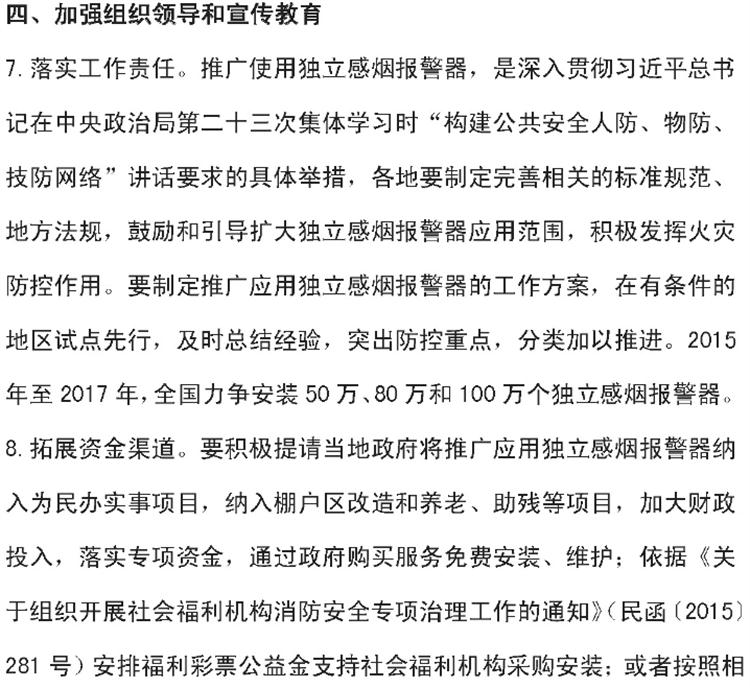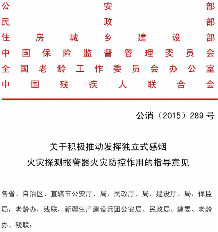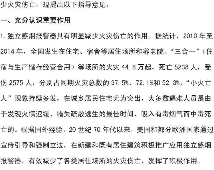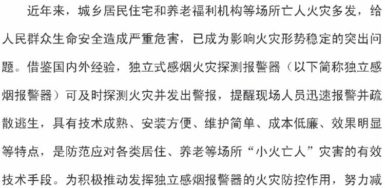 【獨(dú)立式煙感】火災(zāi)探測報(bào)警器六部委支持文件